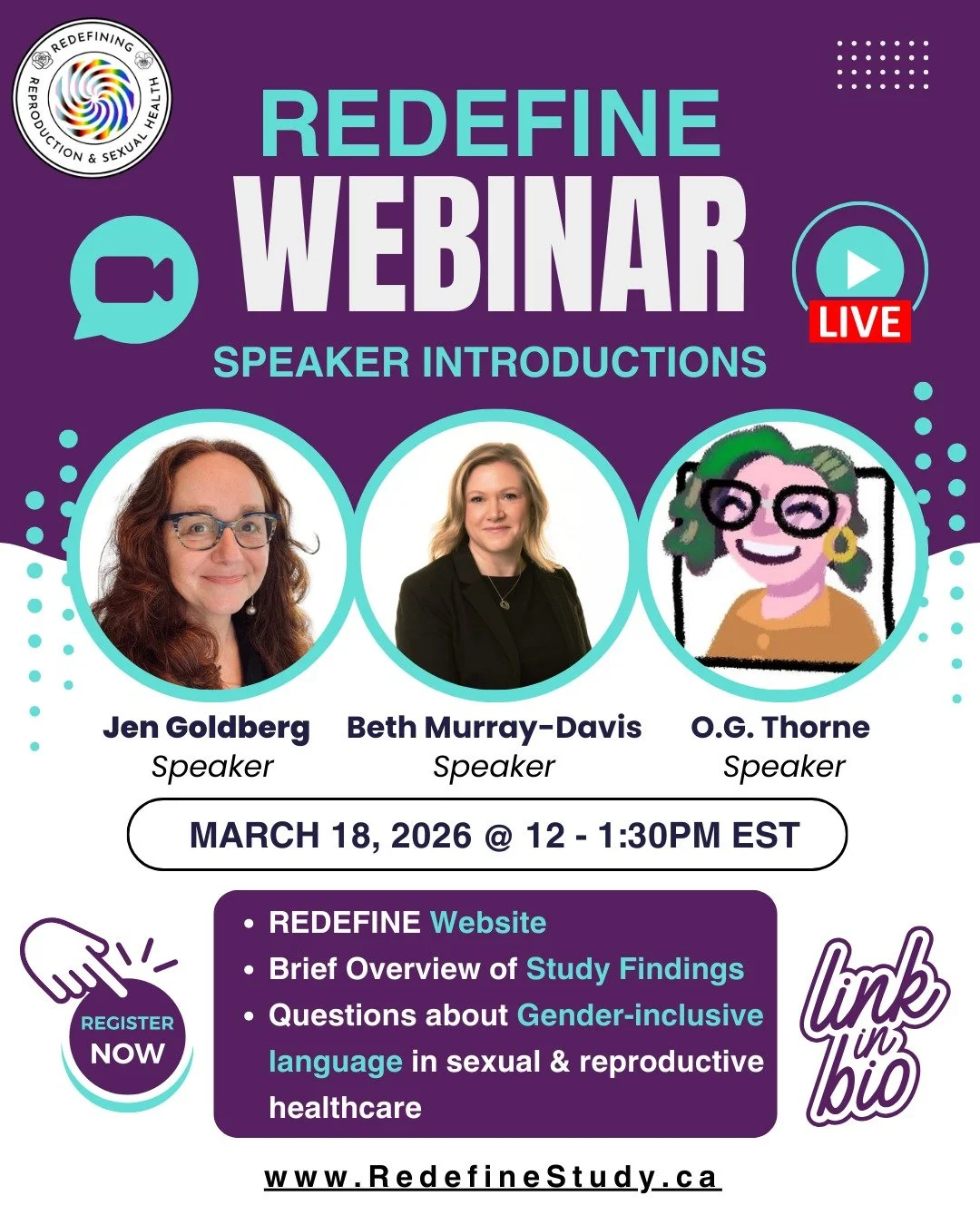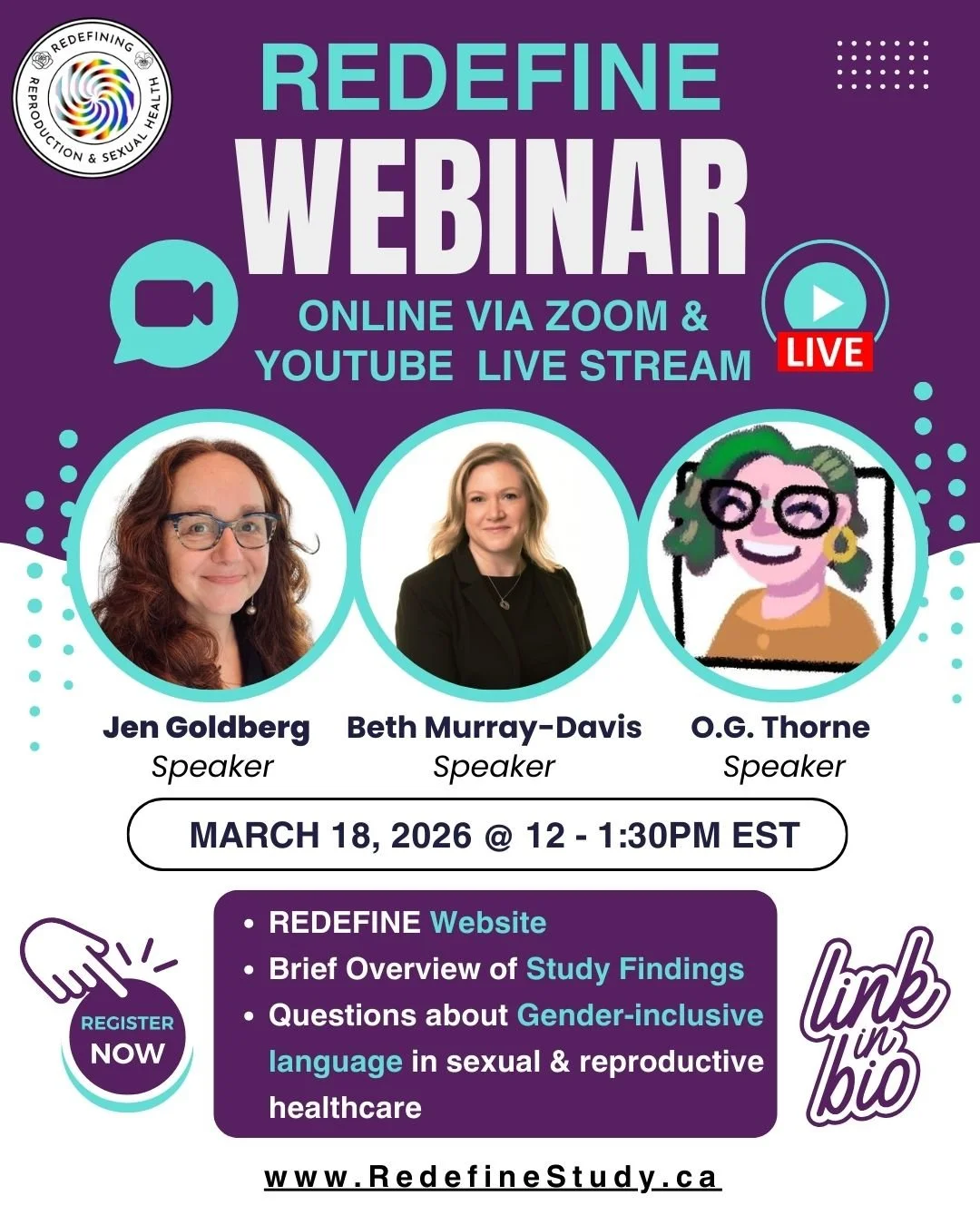 Join the REDEFINE core research team to discuss their findings around gender-inclusive language within Canadian reproductive and sexual healthcare and the REDEFINE website.